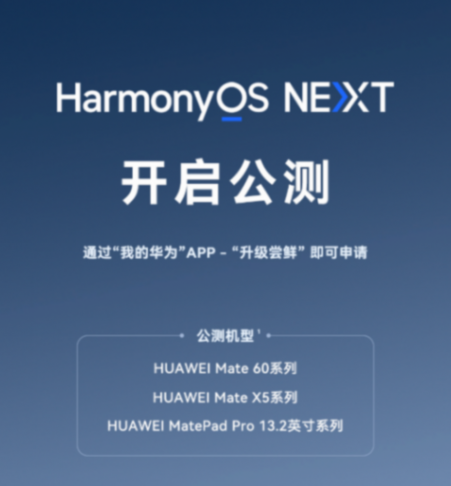 上周,HarmonyOS官方正式宣布,HarmonyOS NEXT開啟公測,首批公測機型包括華為Mate 60系列、華為Mate X5系列、華為MatePad Pro 13.2英寸系列。
