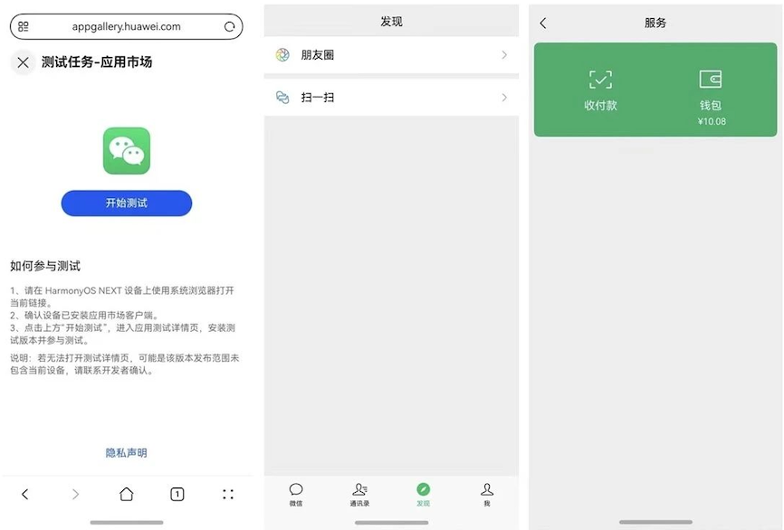 據悉,微信鴻蒙原生版于10月8日正式開始邀請內測,已升級至原生鴻蒙操作系統HarmonyOS NEXT的用戶,可在收到邀請后搶先體驗。