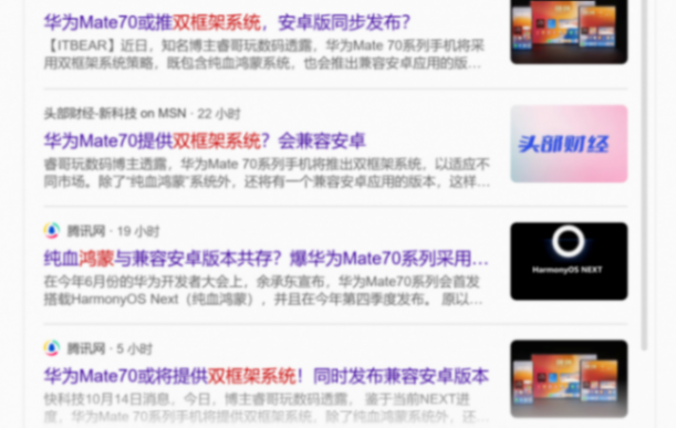 另外,還有多家媒體報道稱,華為Mate70可能會采用雙系統框架。