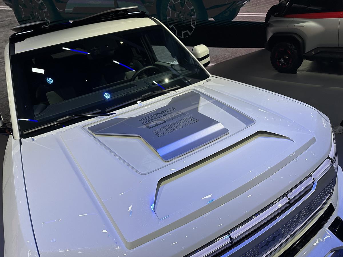 新車的前機蓋不僅增加了進氣孔的設計,而且在進氣孔后部位置還增加了一塊銀色的Y形輪廓飾板,上面帶有VEKING的字樣。