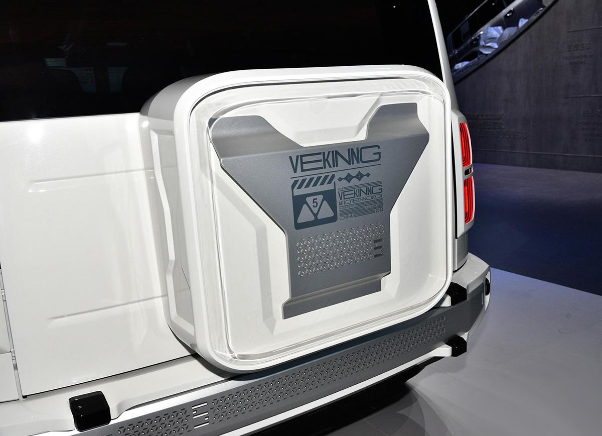 車尾部分,取消了后尾門的背掛胎,而是改為了一個方形的背包設計,內部帶有儲物空間。新的后杠造型和前杠相呼應,帶有銀色的鏤空紋理裝飾。
