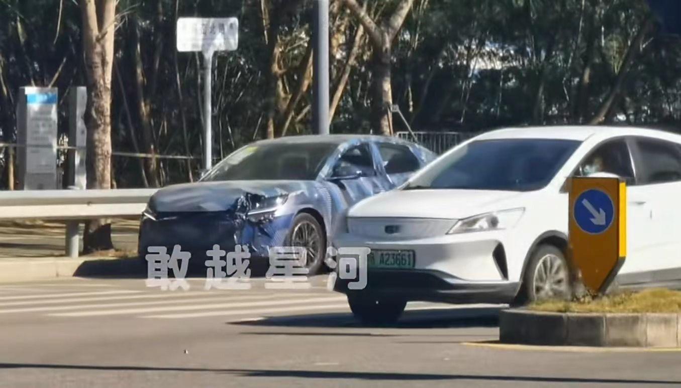 在車的前臉的部分,我們可以看到比亞迪秦L EV采用的是完全不同于秦L DM-i的設計,它的前臉更加簡約化一些,前臉的大部分位置都采用封閉式的設計,可能會采用類似海洋網純電車型家族化的類似的設計語言。新車的前大燈之間是標志性的裝飾條,不過這個細節暫時還沒有露出來。車的前臉的中間采用封閉式的設計,前臉的底部有細長的格柵,最底端是運動化的前鏟,它的運動效果還是很明顯的。