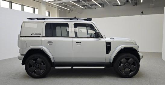 側面來看,新車采用了奔馳大G的同款設計,粗獷的輪眉設計,機械原廠踏板,還擁有方正的車身造型設計,很復古。此外,翼子板部分還借鑒了路虎攬勝的裝飾造型,氣勢強烈。