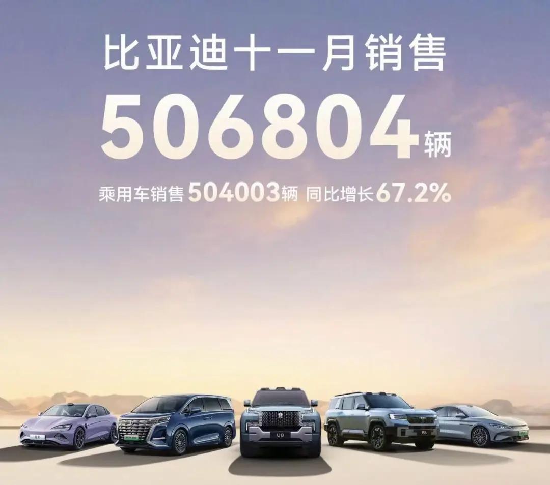 不過比亞迪實際表現相對穩健,11月銷量依舊是50萬+。