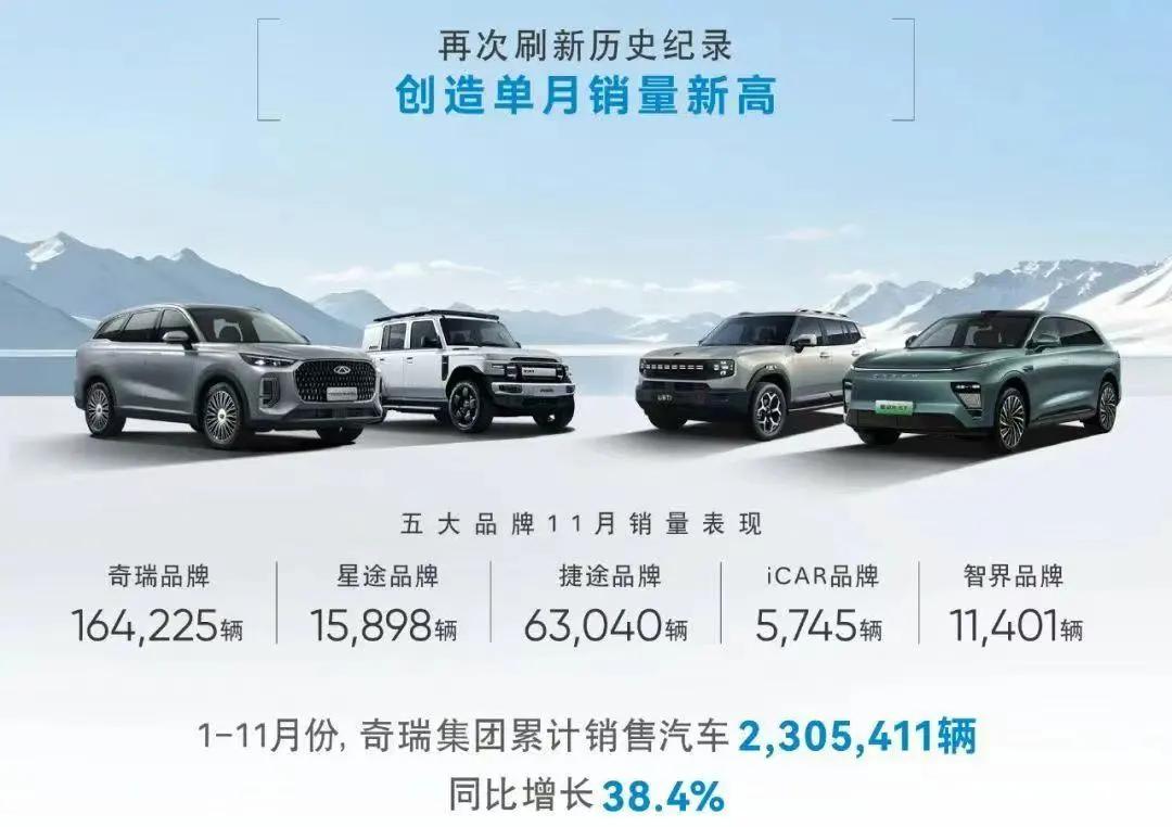 奇瑞兵分四路疊加增量,11月創歷史新高