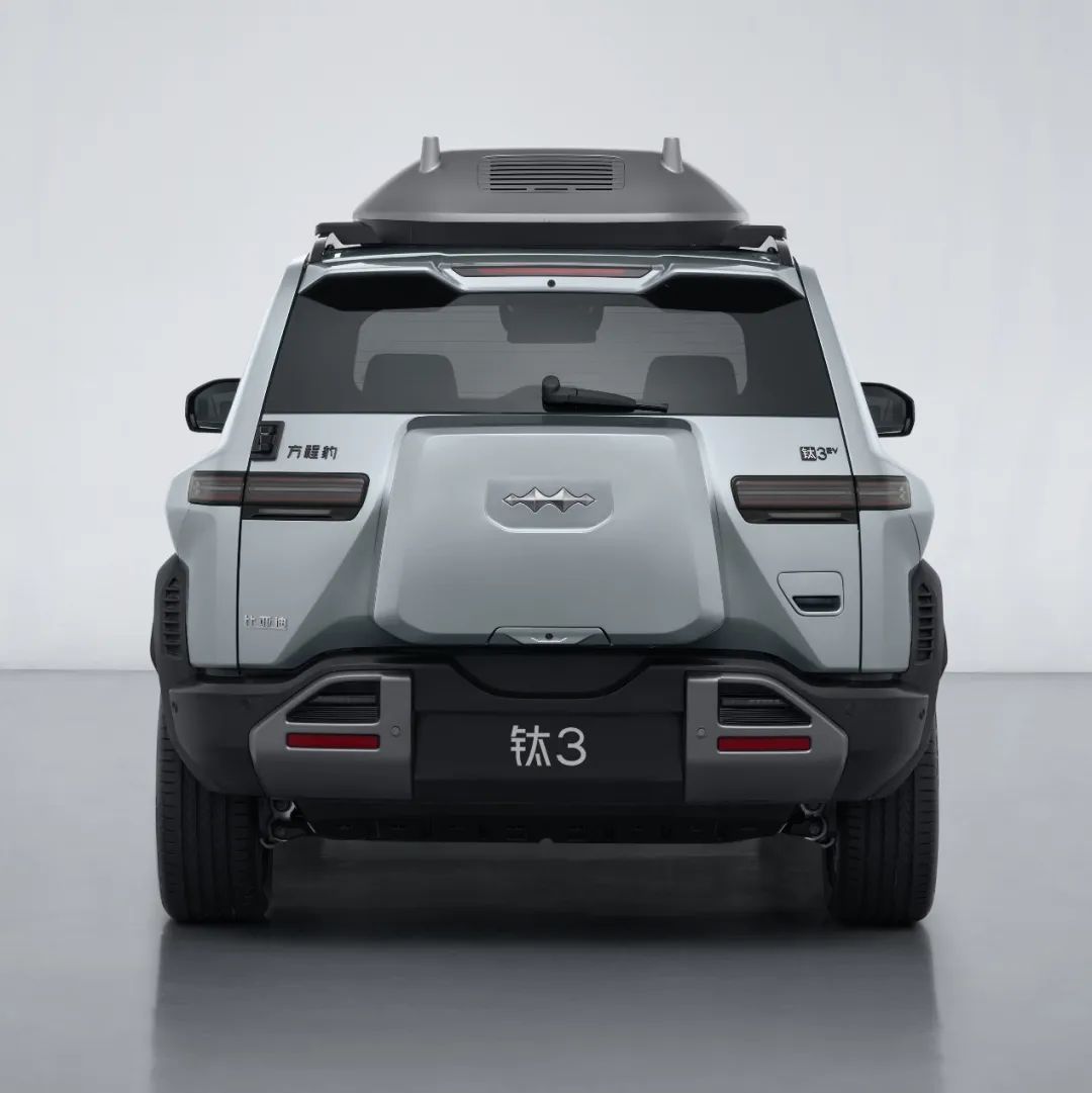 另外,鈦3的外觀尺寸從照片看或許會比豹5略小一些,這也可以從其數字命名的邏輯中看出。從設計語言看,鈦3將采用外掛式備胎、側開式尾門等一系列典型硬派越野設計元素,車頂可能也會有官方行李架等附件開發。
