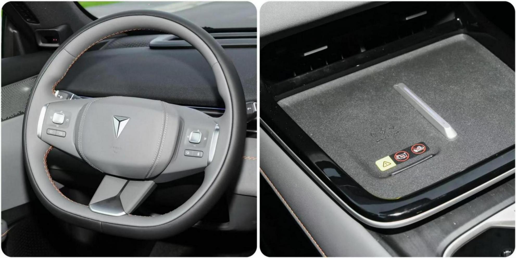 我比較喜歡這臺車的方向盤,采用雙色搭配,上面還有橙色縫線設計,看起來挺精致的,皮質材料左右轉動時耐磨性明顯,夏天手心出汗不會出現打滑的情況,方向盤下側加入了電子式懷擋功能,手機無線充電區域在中控屏幕下方,最大充電功率為50W,我們用手機做了體驗,系統識別充電的速度挺流暢的,沒有卡頓的現象,平時跑長途用起來也方便。