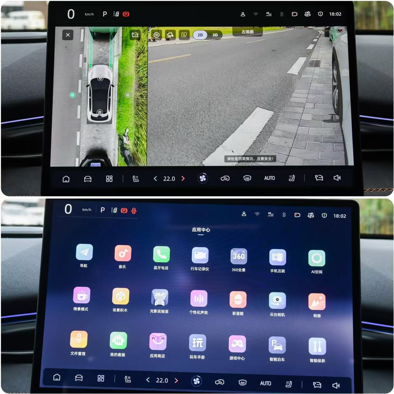 這臺車的下部燈組內部配備了Deepal 4K智趣云臺相機,支持智能一鍵抓拍、全景照片、守護模式等功能,我們在體驗的時候,放了一段音樂視頻,然后對著墻壁投影,可以投射最大120英寸的畫面,匹配上2個25w的車外音響,我覺得有點像戶外移動的唱吧,我們平時在郊外旅行或者是給孩子過生日,可以增加趣味性。
