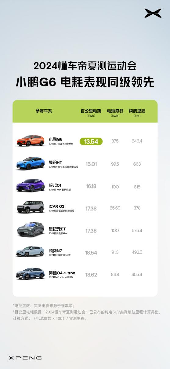 而且小鵬G6在極端天氣下,它的電耗水平也繼續(xù)表現(xiàn)出了比同價位競品領(lǐng)先的態(tài)勢,在今年的懂車帝夏測和中汽夏測高溫續(xù)航達(dá)成率中均拿下第一的成績,相當(dāng)于無論是任何季節(jié),小鵬G6都能保持極低的能耗,1公里成本最低僅需不到5分錢(使用家充的情況)。