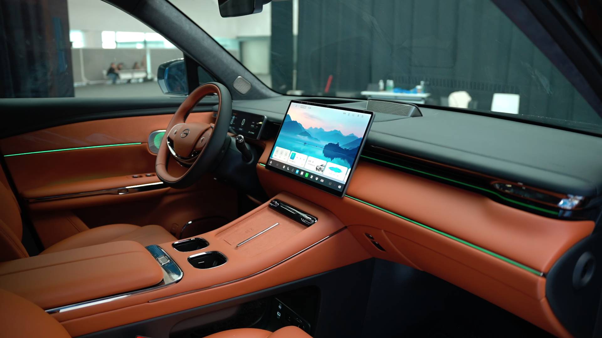 外觀部分有兩個(gè)看點(diǎn),一是燈太會(huì)玩了,前大燈集成了2248顆燈珠,叫“AI情緒大燈”,可以預(yù)設(shè)至少8種燈語,后期還能通過OTA升級(jí)玩更多花樣。另外,還有超2.6米長的智能前燈帶,D柱也配備了呼吸燈,車尾設(shè)計(jì)了類似“回”字的燈組。