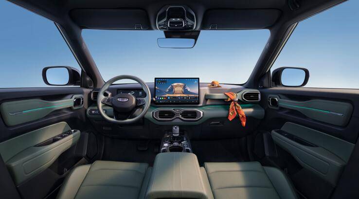 牛仔的內飾設計也極具越野感和科技感,車內趣野把手、護目鏡式空調出風口等越野特征獨具匠心,256色氛圍燈,多色可選,多檔亮度可調,開門迎賓,氛圍燈顏色呼吸漸變,聯動三種駕駛模式,隨意切換;牛仔皮質拼接座椅還壓印“born free”,讓用戶盡享駕趣之樂。