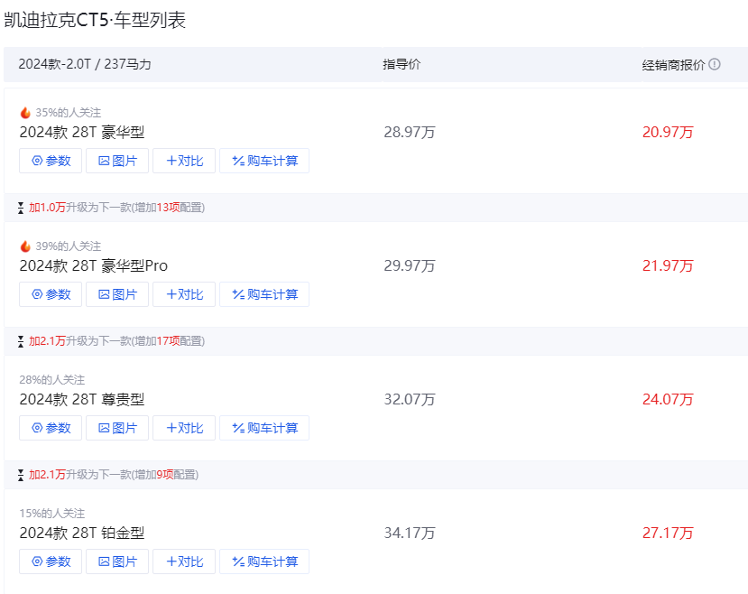 對于許多年輕消費者而言,運動化的外觀和多樣的駕駛樂趣是購車的決定性要素,但放眼當前相對具有性價比的熱門車型,仍然主打運動和操控的車型僅剩凱迪拉克CT5一款,目前車型全系均有著較大的優惠力度,除了頂配鉑金型優惠7萬之外,其余車型均有著8萬元的優惠,接下來我們就來看看這款車型的表現。
