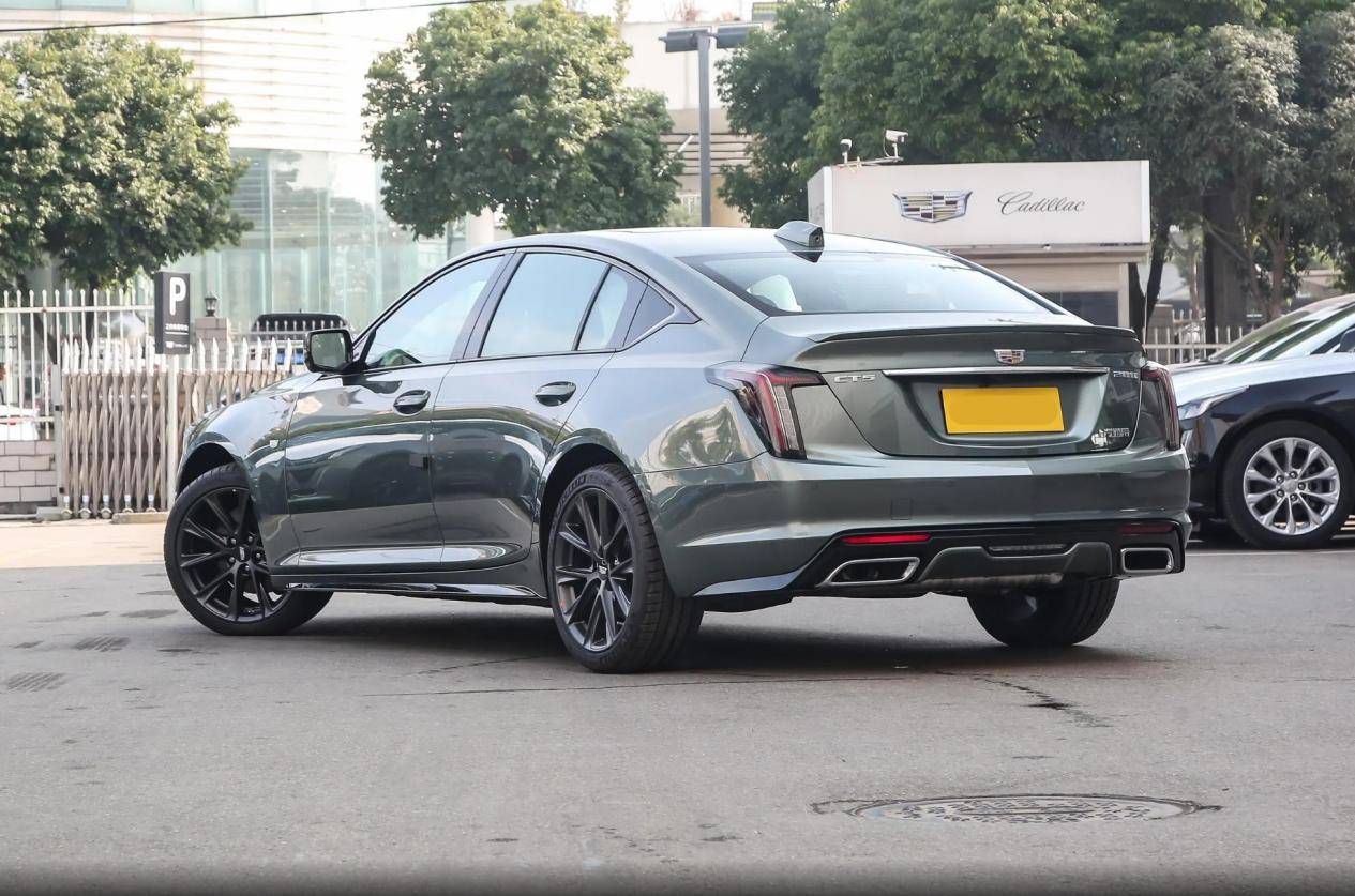 凱迪拉克CT5的車側通過溜背式的車頂線條勾勒出轎跑氣質,車窗的鍍鉻飾條貼合腰線和車頂延伸,尾部區域微翹的夾角及鷹嘴式的設計增加了車身后段的侵略性,腰身區域從大燈組延伸出相對平直的筋線,同時車門下方相對內收的處理也讓視覺感保持緊致。車尾則保持了美式車型特有的寬體沉穩氣質,兩側尾燈從側肩線延伸而出,保持了與頭燈相同的淚眼設計,后包圍相對尾門略有外凸,底部覆蓋了黑色組件,并配有雙出的排氣設計,保持了相對動感的造型。