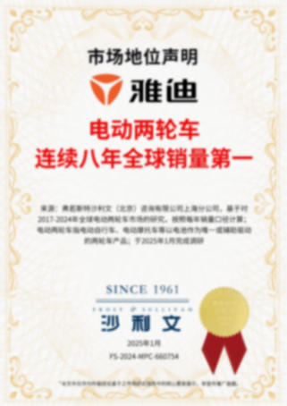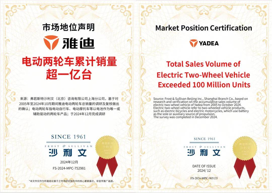 在雅迪科技集團2025年全球零售峰會上,雅迪交出全球累計銷量超1億臺的完美答卷,驚艷全球。這不僅是雅迪自身的驕傲,彰顯其絕對的領先實力,展現(xiàn)出無與倫比的“雅迪速度”;也為全行業(yè)打開了“億級”銷量時代的大門,令全行業(yè)倍感榮光;更是中國科技產(chǎn)品備受全球億萬用戶認可、熱愛和選擇的最好見證,是中國智造領航全球的又一全新里程碑時刻。