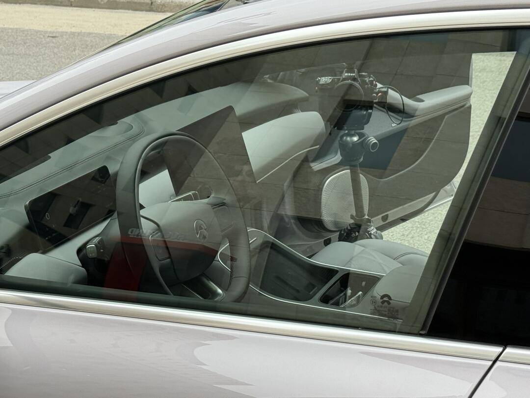 車身側面變化不大,溜背式造型配合無框電吸門、隱藏式門把手等,繼續彰顯時尚前衛屬性,而除同溫層藍、星灰外,或還將新增一款淡紫色車漆,加之20英寸花瓣式輪轂+紅色剎車卡鉗,進一步提升了潮流動感氣息。尾部也繼續配備掀背式尾門、纖細的貫穿式光鋒尾燈,不過將針對后包圍進行調整,加入更多車身同色設計,而熏黑擴散器配合上翹的“小鴨尾”,運動氛圍絲毫不減。