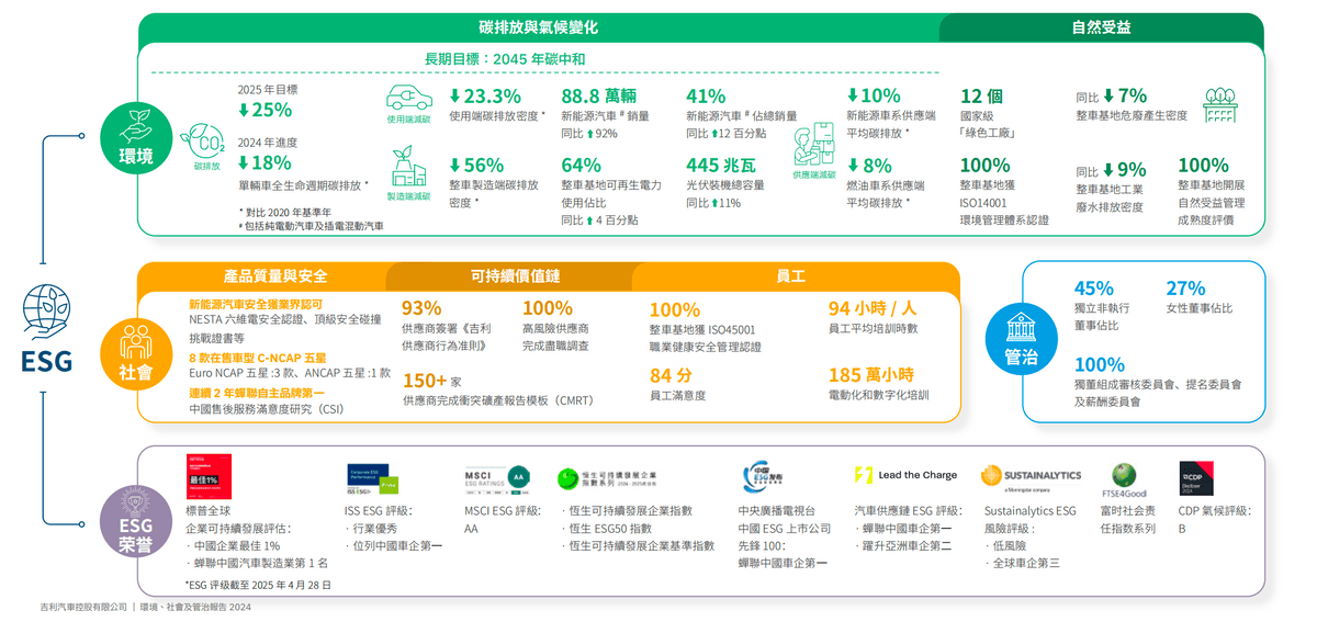 在全球汽車產業面臨深刻轉型的今天,吉利汽車以一份詳實的2024年ESG報告,向世界展示了中國車企在可持續發展道路上的堅定步伐。這份報告不僅是一系列數字和成就的羅列,更是一個傳統制造企業向科技引領型全球車企轉型的生動寫照。