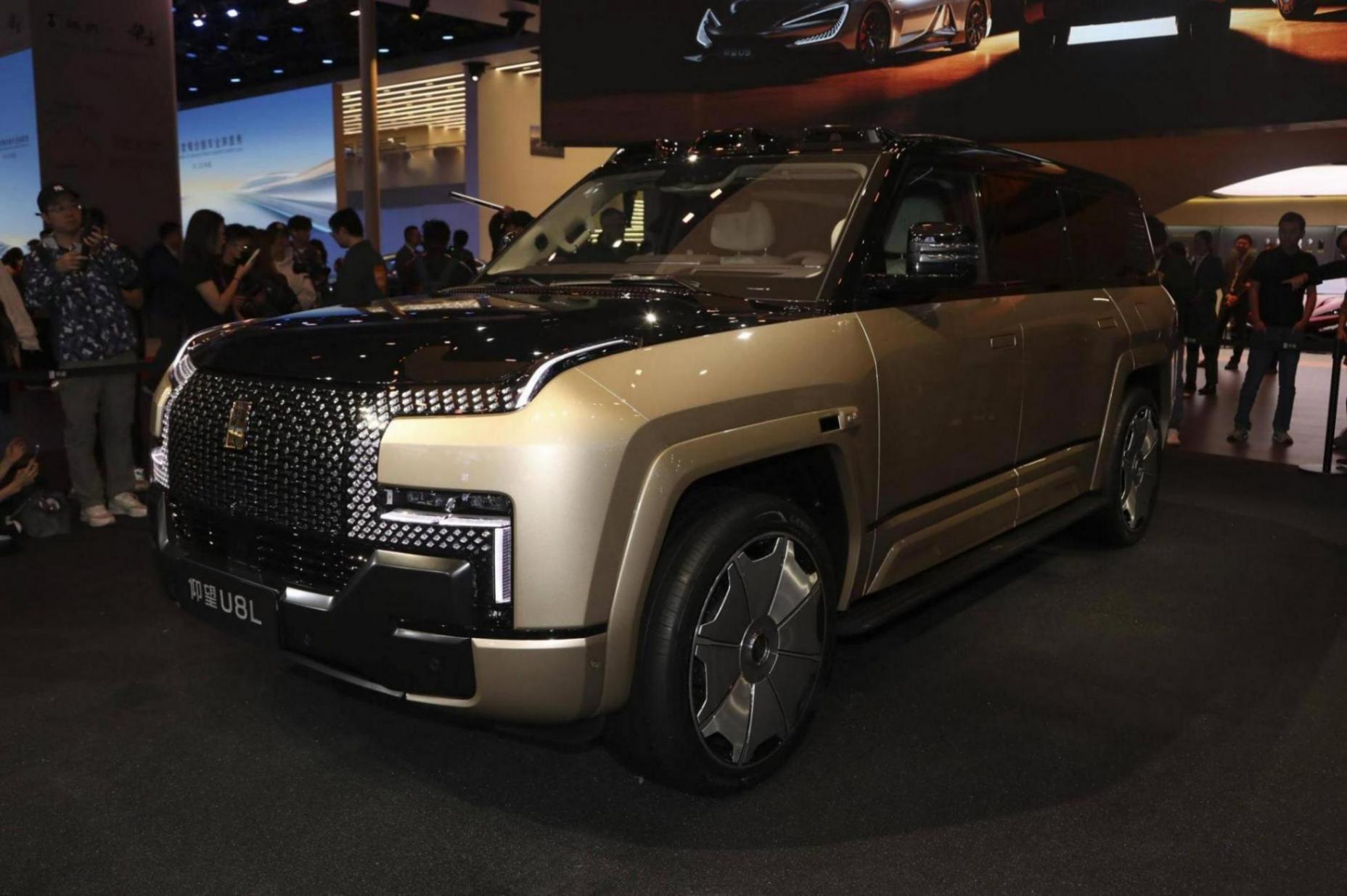 外觀在細節(jié)上也是“尊”感拉滿,新車采用上黑下金的配色,“鼎型”超大中網搭配23英寸邁巴赫風格的銀色“大餅”輪輞,以及天地門配置,同時取消了U8的車尾“小書包”,看起來更加強調豪華商務。值得一看的是,它懸掛了24K真金材質的甲骨文金色仰望品牌logo。官方還表示,車前車尾以及方向盤都能選裝這一車標。