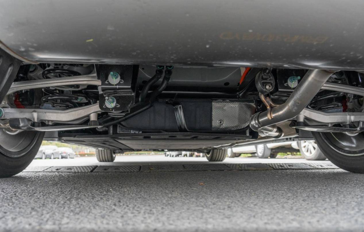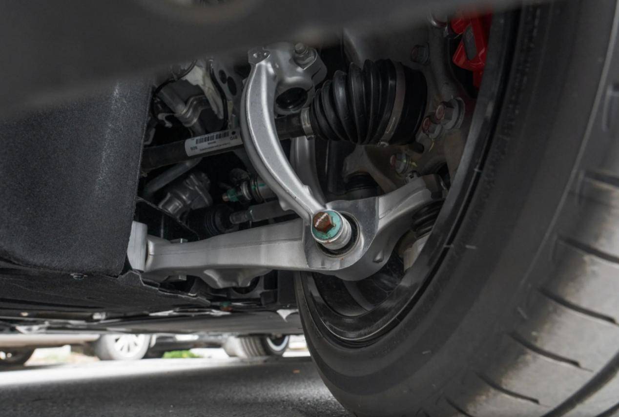 漢L DM車身長度達到5050mm,比漢DM長55mm,軸距增至2970mm,比漢DM長了50mm,車寬也提升至1960mm,帶來更修長的車身比例和更寬敞的后排空間。同時首次采用前雙叉臂后多連桿獨立懸架,取代漢DM的麥弗遜前懸+多連桿后懸組合。雙叉臂結構通過上下叉臂協同控制車輪運動軌跡,提升過彎穩定性和側向支撐性。