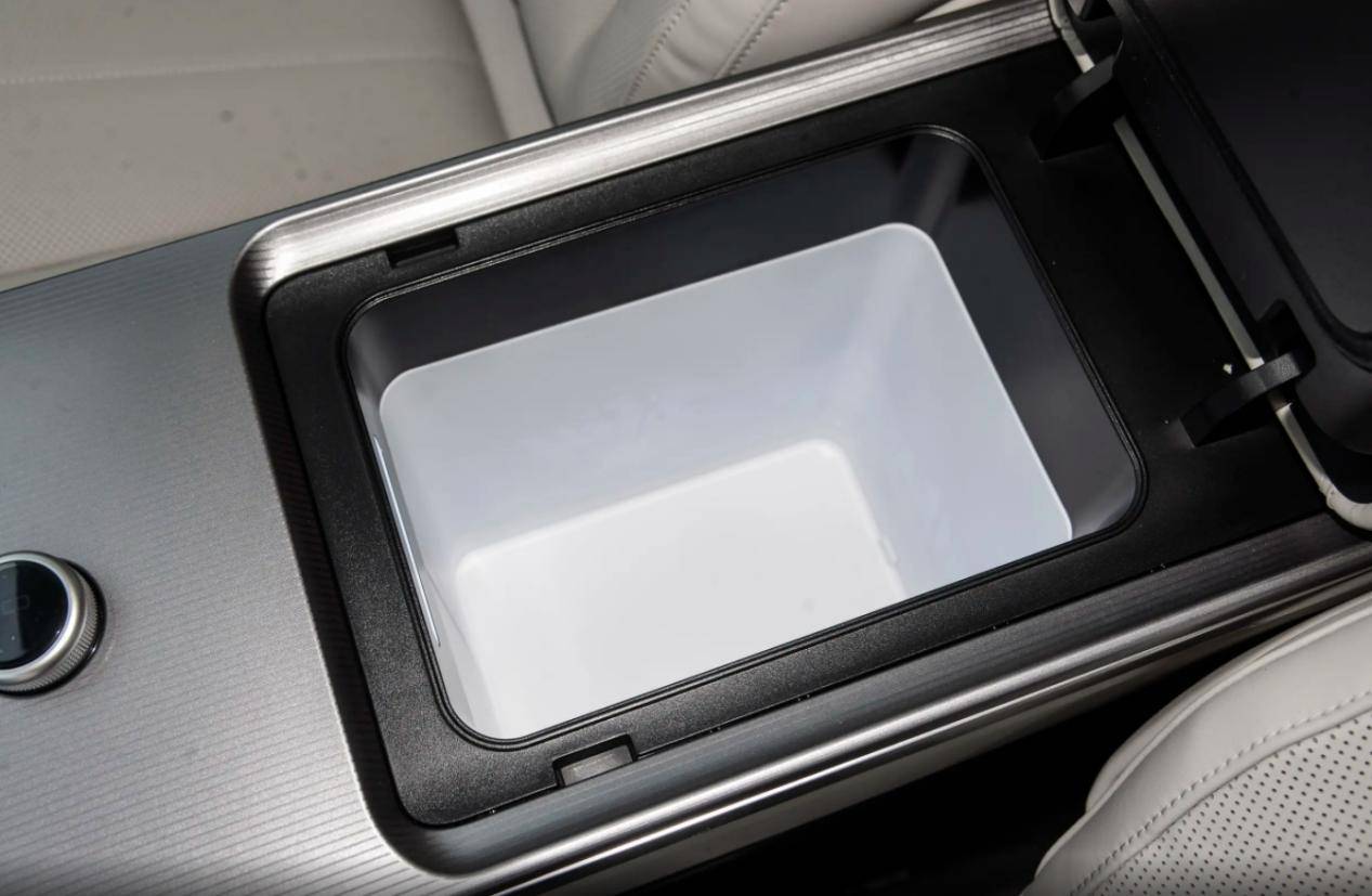 除了HiFi級丹拿音響、雙層氛圍燈、車載香氛系統,漢L DM還配備了轎車中不多見的獨立壓縮機車載冰箱,制冷溫度可以達到-6℃,炎炎夏日,可以喝上一口冰鎮飲料。