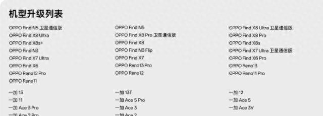 那哪些手機能用這個更新呢?基本上是中等和高等價格的手機,最近三代的機型都行。比如可以折疊的手機,Find X6到X8,Reno11到13,一加11到13,一加Ace 2到5都可以。