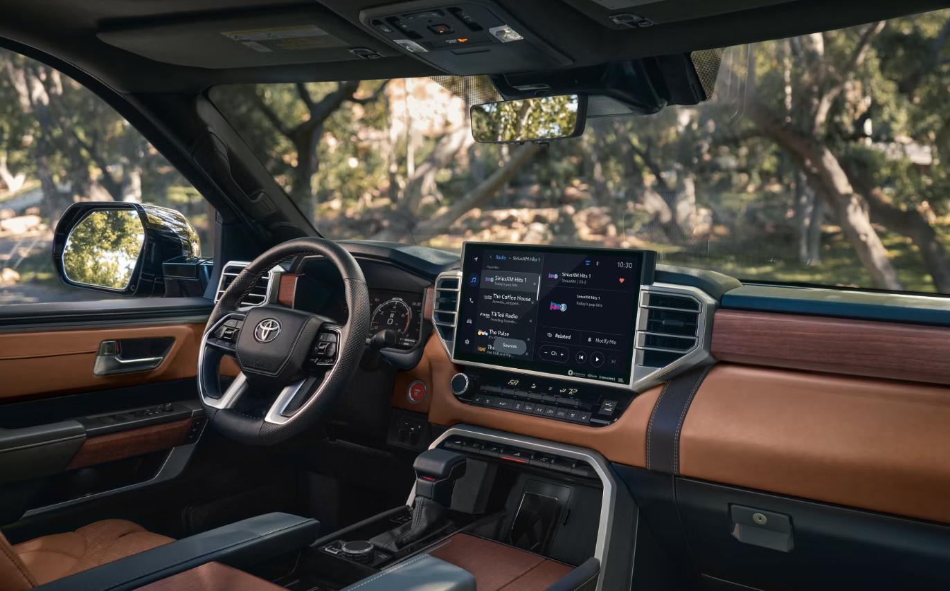 2025款豐田坦途內飾提供多種顏色搭配方案,可以選擇,根據不同車型,一些細節的顏色搭配和用料也是不同,中控屏幕的尺寸為14英寸,內飾的儲物空間也是相當豐富,可以裝載大量零碎物品,Limited版本前排座椅還支持8項電動調節,駕駛模式切換采用旋鈕式。