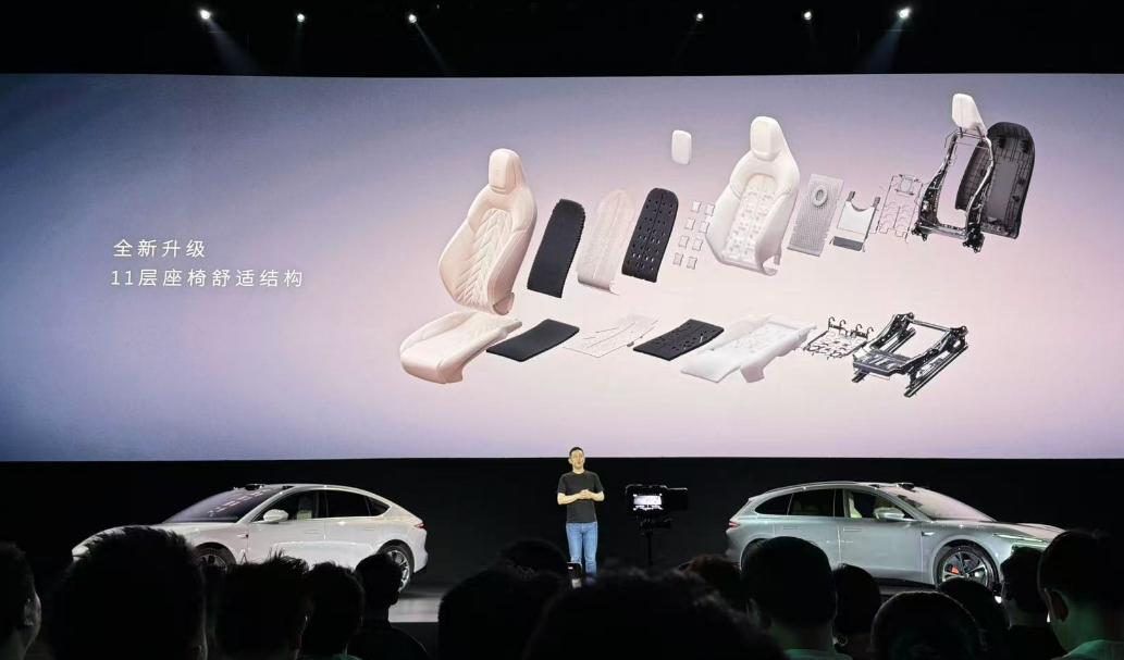 例如,老款ET5最受爭議的座椅問題,成為此次升級的突破口。新車型采用11層復合材質座椅系統,坐墊發泡層加長、通風效率提升90%、加熱覆蓋面擴大31%。更巧妙的是,蔚來沒有盲目加厚坐墊,而是通過優化人體工學曲線,在保持運動造型的同時緩解了“板凳感”。