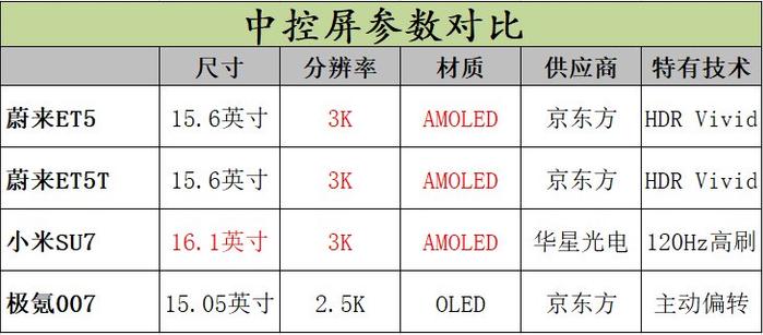 通過簡單對比可以看到,除了3K高分辨率、100%廣色域和支持HDR Vivid外,新ET5/ET5T的中控屏幕尺寸也較為適中,沒有一味追求巨大。