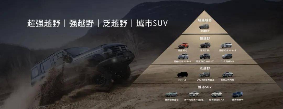 正是今天魏建軍強調的慢,才造就了現在我們看到長城的快和全。在不同價格區間,從10萬級的梟龍、大狗,到15-20萬的猛龍、坦克300、H9,再到20萬以上的藍山、高山、坦克400,30萬~40萬價位的坦克500、坦克700;在品類創新上,從城市SUV、泛越野到強越野、MPV、皮卡再到摩托車、即將登場的豪華轎車,長城幾乎實現了汽車全場景覆蓋,并且在每條產品線背后,都匹配了可持續的技術底座。