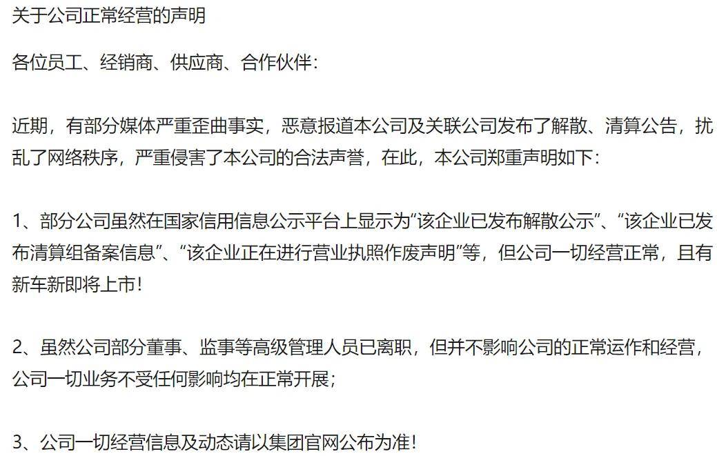 值得一提的是,就在6月17日,寶能汽車發(fā)布聲明稱公司一切經(jīng)營正常,部分公司雖在國家信用信息公示平臺(tái)上顯示解散公示或清算組備案信息,但不影響公司整體經(jīng)營,且有新車即將上市。