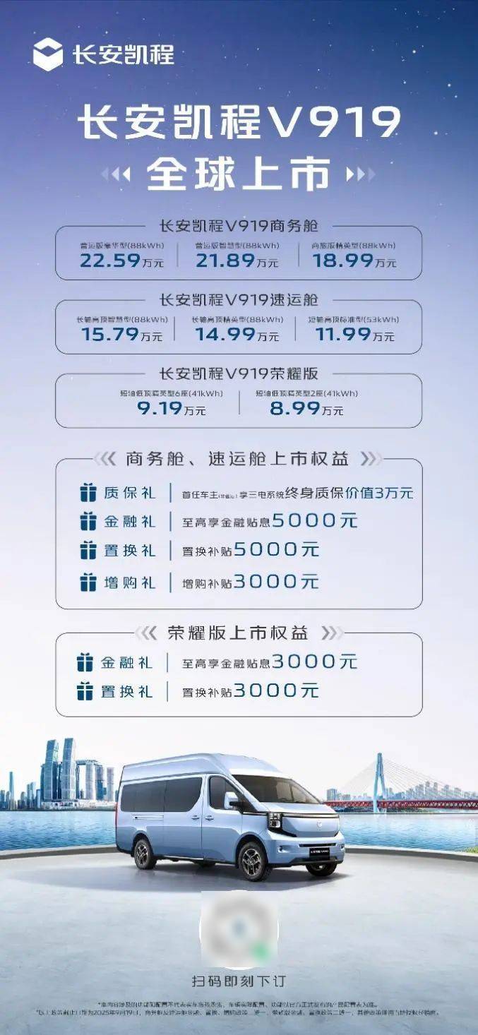 6月26日,“陸地航班·V你而來——長安凱程V919全球上市發(fā)布會”在重慶舉行。全球首款純電動后驅(qū)寬體輕客、首款K01架構(gòu)商用車型、首款新央企數(shù)智商用車、首款接軌乘用車體驗輕客——長安凱程V919,以“四大首發(fā)”實力強勢上市,憑“陸地航班”之空間和舒適度,顛覆燃油輕客市場,售價為8.99-22.59萬元,為新世代生意人帶來全新的“低能耗、大收益”解決方案及智慧物流新生態(tài)。