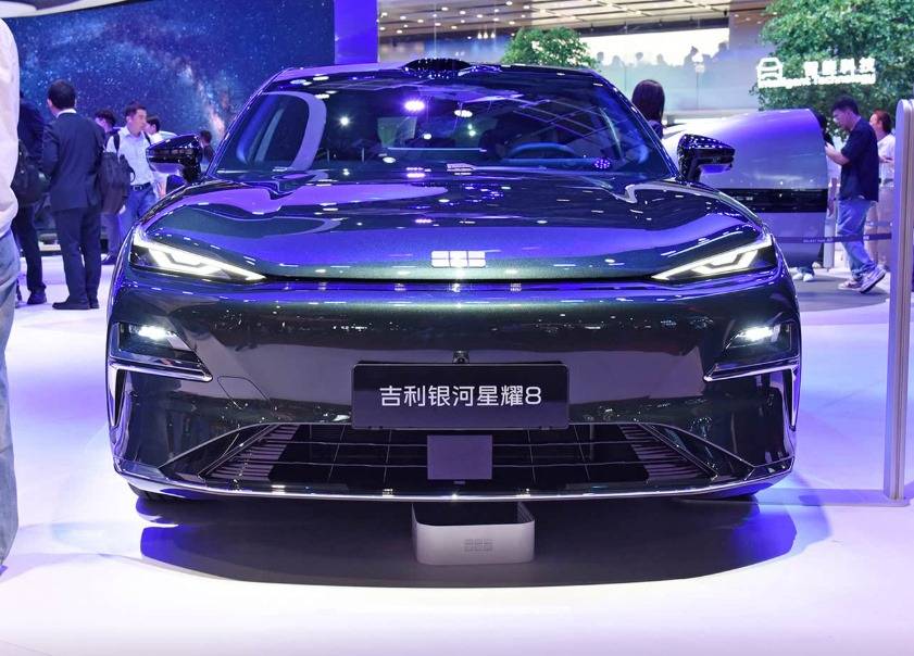 吉利銀河星耀8定位中大型轎車,其具體長寬高分別為5018×1918×1480 mm,軸距2928mm。該款車型的車側線條修長舒展,密條輻式輪圈與無框車門足夠吸睛。同時該車尾部具備大溜背造型,并匹配貫穿式尾燈組,無論是正后方還是斜側方觀察,視覺美感都不差。
