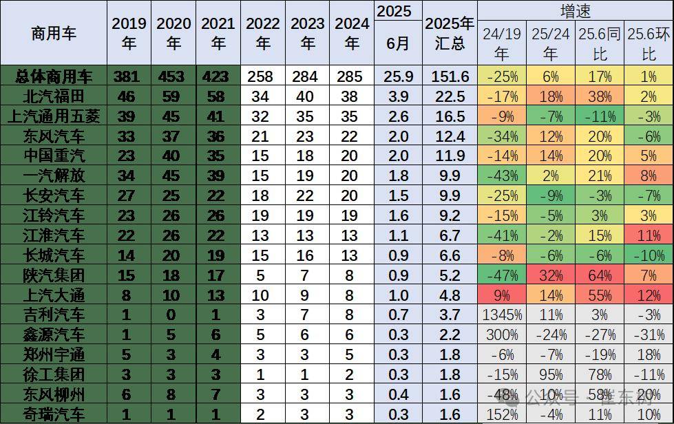 6月商用車國內(nèi)銷量實(shí)現(xiàn)26萬臺(tái),同比增17%,環(huán)比增1%。2025年1-6月商用車國內(nèi)銷量實(shí)現(xiàn)152萬臺(tái),同比增長6%,相對(duì)于2023年和2024年的商用車平穩(wěn)期,在2021年創(chuàng)出峰值后,今年創(chuàng)出2022年后的近幾年新高的良好水平。