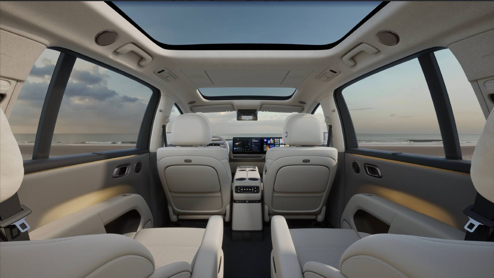 內部空間設置上,新車在實用性上做了不少調整,看一組官方數據,理想i8二排腿部空間達到900mm,三排腿部空間達到855mm,車內布局比較合理,不管哪個座位,寬敞度都很好。